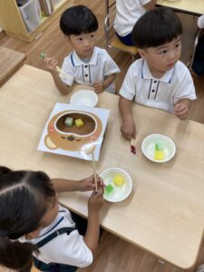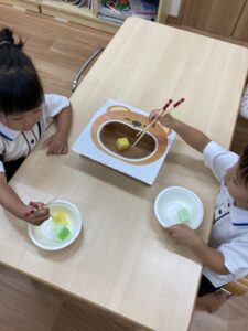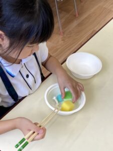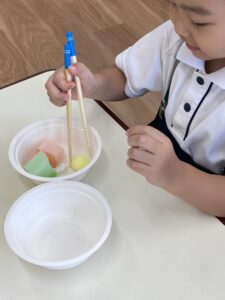 お箸の持ち方も一生懸命練習する姿が見られました。