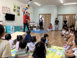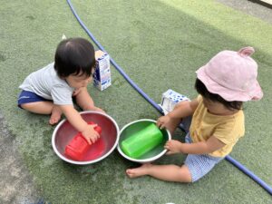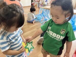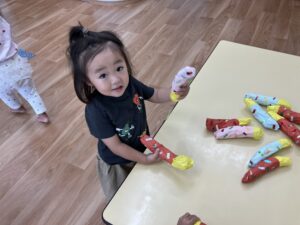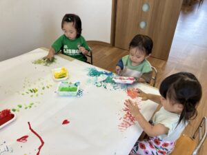 LS Rabbit Mouse Team Dairy 〜summer〜 2026年2月4日 LS(3歳未満児クラス) Rabbit Mouseさんの夏頃の様子を紹介します🎶 🌟English Lesson🌟 先生のお話を良く聞けています😊 ☀️Greeting☀️ Mouseさんも手を挙げてお返事ができます🎶 🎨製作🖌️ 絵の具やクレヨン、フィンガーペインティングだってお得意です🎶 🏠室内遊び 💦戸外遊び💦 水遊びだーいすき❤️氷や泥んこも気持ちよかったな😆 🎋たなばた🎋 七夕では星探しをしたよ✨🌟✨ 🍀お散歩🍀 🍧夏祭り🍧 楽しい夏が過ごせました☺️🌻 投稿ナビゲーション 前の記事食べ物のゆくえ次の記事LS Rabbit Mouse Team Diary 〜Autumn〜